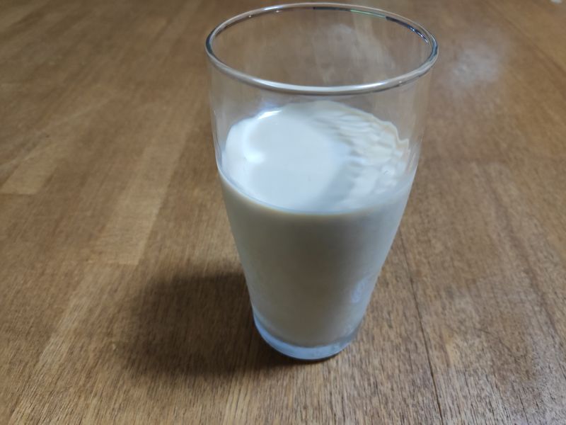 カメラの性能のせいなのか白く見えますが、実際はもう少しクリーム色です。 飲んでみると……美味しい!